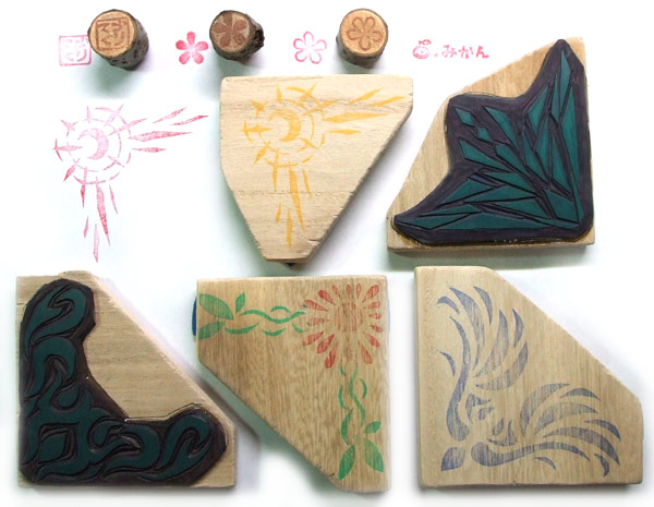 切り紙がベースになっているので、紙を半分に折って、適当にデザイン書いて、切り抜いて、気に入ったものをはんこにしました。